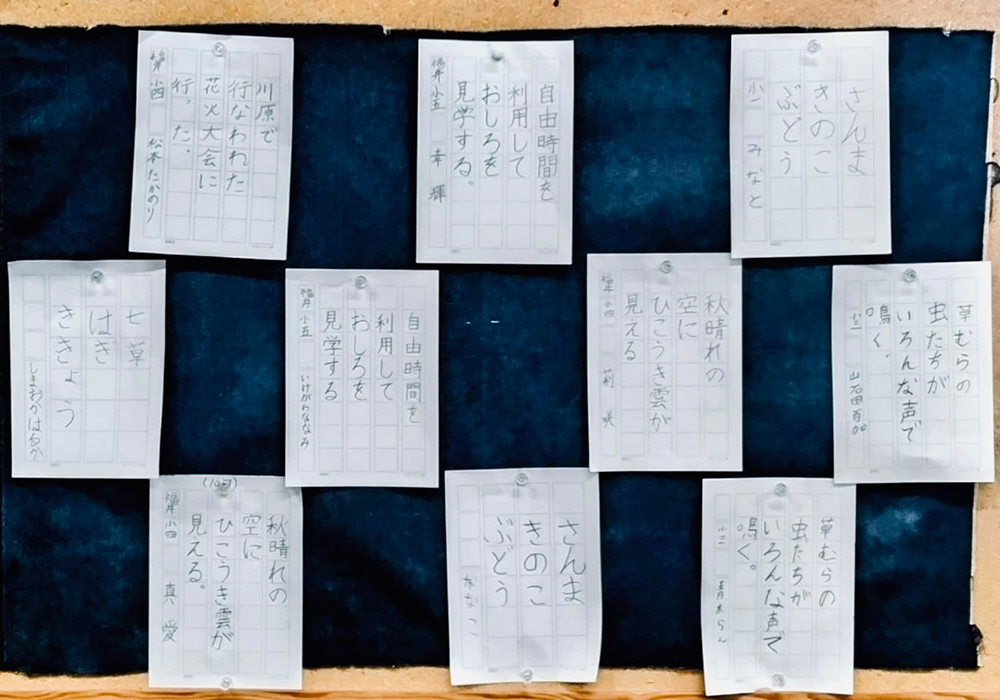 これらの写真は小学校3年の男の子の連絡帳です。毛筆はまたまだこれからですが、頑張って書いています。